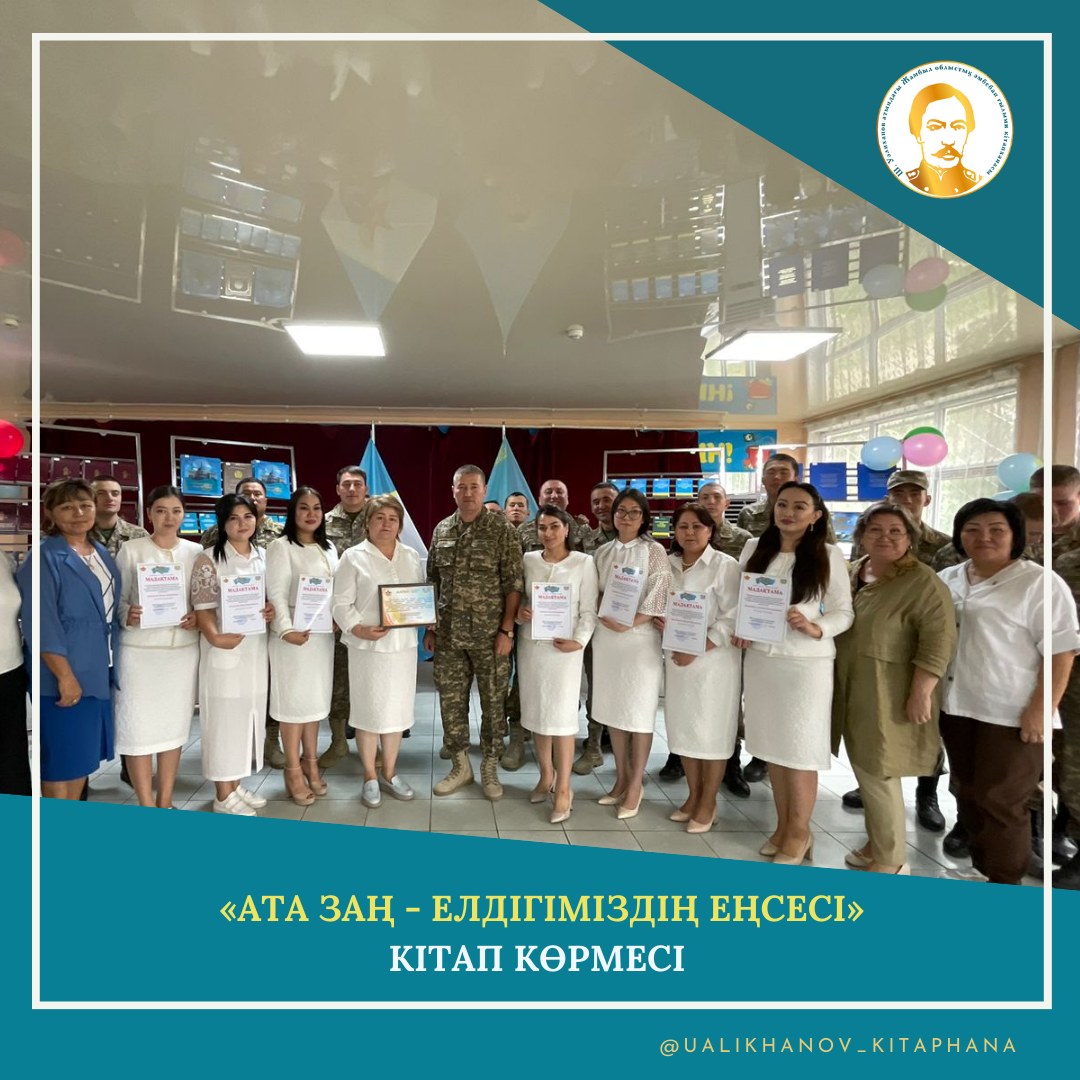Ш.Уәлиханов атындағы Жамбыл облыстық әмбебап ғылыми кітапханасы 30 тамыз - Қазақстан Республикасының Конституция күніне орай 28903 әскери бөлімінде «Ата Заң - елдігіміздің еңсесі» атты «АТА ЗАҢ - ЕЛДІГІМІЗДІҢ ЕҢСЕСІ» кітап көрмесі ұйымдастырды.