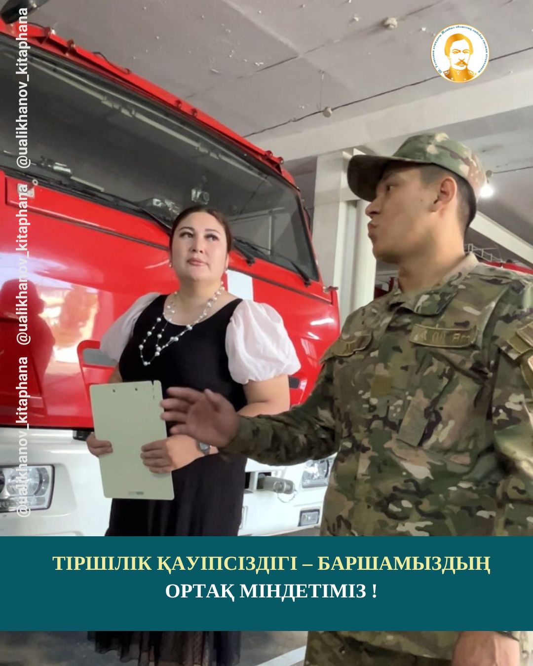 Кітапхана қызметкерлері ҚР ТЖМ Жамбыл облысы ТЖД Тараз қаласы Төтенше жағдайлар басқармасының №1 мамандандырылған өрт сөндіру бөліміне барып, өрт сөндірушілердің күнделікті қызметі, төтенше жағдайларға жедел әрекет ету алгоритмдері және тұрғындардың қауіпсіздігін қамтамасыз ету бағытындағы атқарылып жатқан жұмыстары мен қызметкерлердің кәсіби дайындығымен танысты.