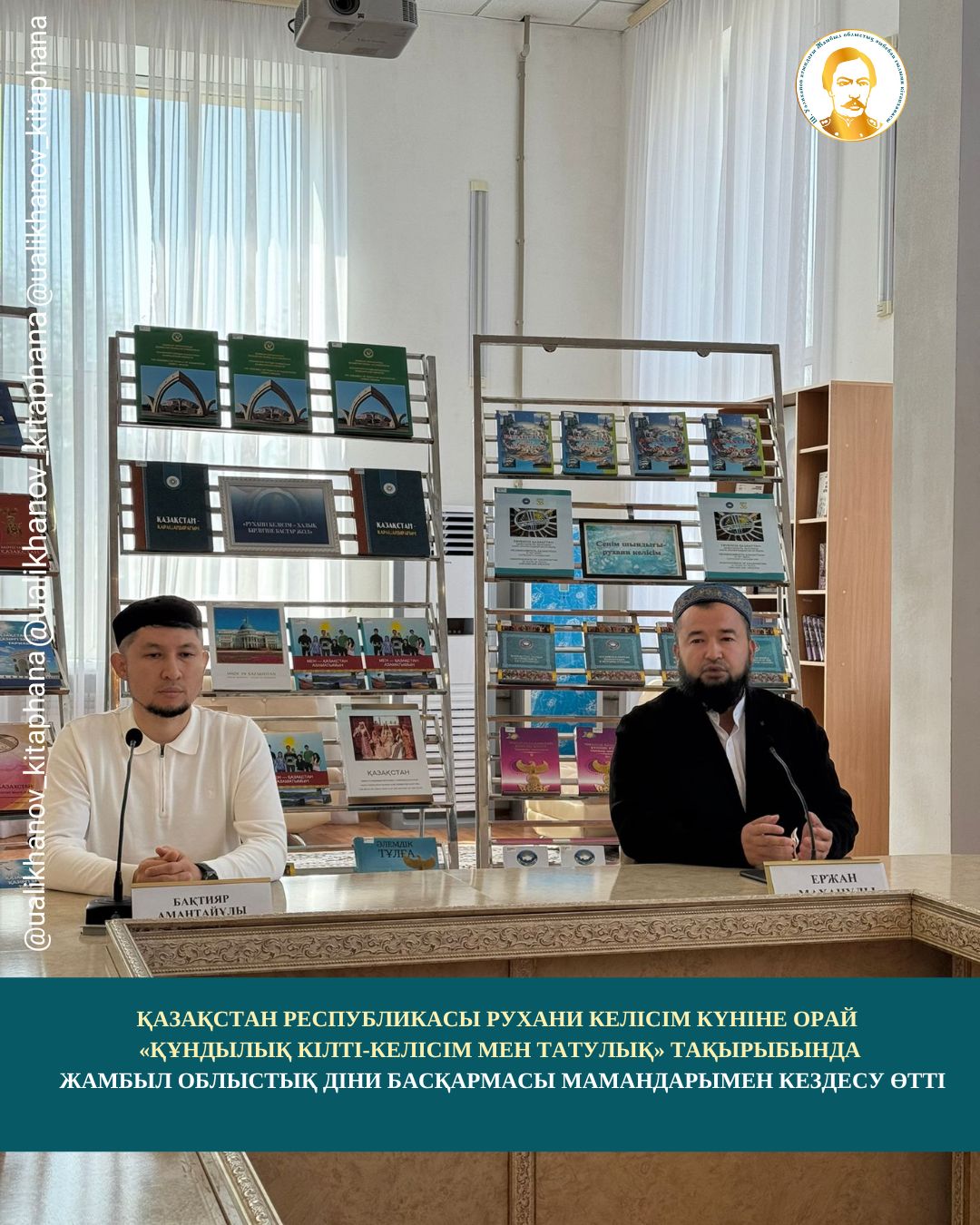 18 қазан – Қазақстан Республикасындағы Рухани келісім күніне орай, «Құндылық кілті – келісім мен татулық» атты кездесу ұйымдастырылып, оған Жамбыл облыстық діни басқармасы мамандары қатысты.